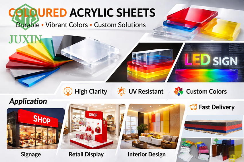 High-quality coloured acrylic sheets for signage, retail display, furniture and architectural applications. Custom colors, multiple thickness options, and reliable manufacturing from JUXIN PLASTIC GROUP.